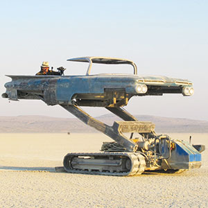 Since 2006, Maker Faire has given a platform and a playground to creative innovators and their fans. This year's lineup features a multitude of makersfrom vinyl screen printers to the pilot of "Maria Del Camino," an art car that marries the body of a 1959 El Camino and the mechanical bones of a Komatsu excavator. Her driver, Bruce Tomb explains that the vehicle is the closest he'll ever get to piloting a flying car.