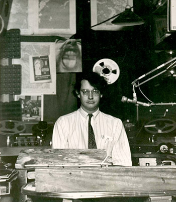 On the air, during occasionally clothing-optional broadcasts (“I did live nude radio”), Alexander billed himself as “Geoff Manson.” “I didn’t want anyone at school to know I was doing this,” he says. “I wanted to remain an outcast. Nobody cared about pseudonyms, and a lot of the shows had no name. It wasn’t about ego, it was about doing programming that was different and outrageous. You’d get a musical education from the wealth of records there.”