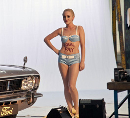 It's hard to resist a film suggesting that the struggle for equal rights is a continuation of the David-and-Goliath aspects of England in World War II. In 1968, at the huge Ford Motors plant in Dagenham, London, a group of some 187 female seamstresses work sewing the auto upholstery. It is a job classified as unskilled labor and performed in a leaky and un-air-conditioned garage; since it's a torrid May, the workers throw modesty out and work in their bras, keeping an eye out for men invading the building.