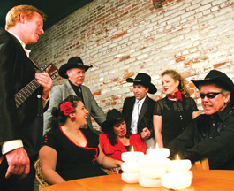 Since the title of Sixth Street Playhouse's new musical production is Ring of Fire: The Music of Johnny Cash—with deliberate emphasis on the word "music"—audience members might be expecting a little more Johnny Cash than what shows up in this slapdash (though occasionally well-performed) jukebox revue. In the show, written by Richard Maltby Jr. and William Meade, and directed by Michael Fontaine, seven performers take turns singing 32 of the Man in Black's songs, with snippets of uneven narration (jumping oddly from first person to third with no rhyme or reason) that are passed from performer to performer like lyrics in a gospel tune. Short scenes from Cash's early life are reenacted here and there, with different actors playing Cash each time, creating a bit of initial confusion while serving to remind us that this show, after all, is not really about Johnny Cash; it's about Johnny Cash's songs.