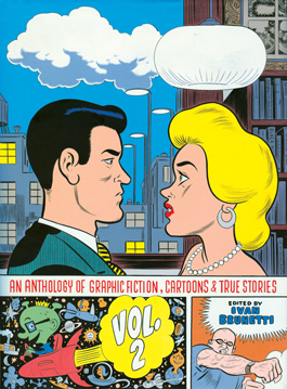 What Brunetti was trying to do: something far more modest, apparently. The 86 artists gathered in An Anthology of Graphic Fiction, Cartoons and True Stories, Vol. 2 (Yale University Press; $28) merely "share the same cultural broth," Brunetti writes. He adds, "Cartoonists are, at heart, doodlers," and that's Brunetti's way of dismissing even his own surpassingly morbid and crazed autobiographical cartoons.