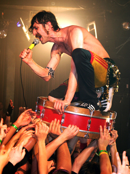 This reeducation has reached a huge audience with Gogol Bordello's latest album, the critics' favorite Super Taranta! "It's a much more advanced record in a lot of ways," says Hütz, "chiefly in songwriting and band performance, and simply because we became that much more fucking awesome." Bravado, sure, but the band has a mission beyond mere self-aggrandizement: to introduce their Eastern European roots to the English-speaking world, just as their namesake, Nikolai Gogol championed the Ukraine in Russia.