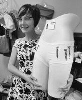 Hunk o' Man: Martina Schnitzler gamely hoists screw-adorned undies by local designer Evo Noche.
