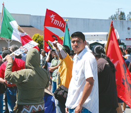 SECURED: Valentin Cuevas Lopez at the May 1 march in Santa Rosa against ICE collaboration. A bill advancing in the Assembly could effectively end the program, which has had complex, unintended consequences.