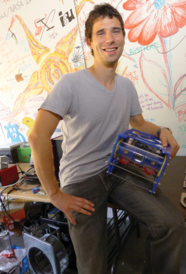 But dividing his time between school and building robots is one of Stackpole's talents; in fact, while an undergrad at San Jose State, he once built a robot named ESTR that he outfitted with a webcam and sent to attend lectures in his stead, controlling it from his dorm room.