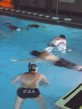 Brian Tucker, a local UWH group organizer, has been playing since his teens and has coached the Women's USA Underwater Hockey team. "It's an anaerobic sport—you can't breathe," he says. "You have to control your breath to handle the puck."