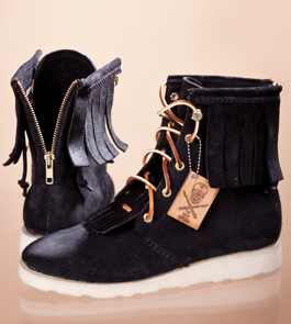 "I want to create something that's high-quality and fits comfortably," Chambrone explains, describing how he retrofits sneakers with an industrial sewing machine given to him by his father, using everything from leather to stingray to Swarovski crystals (another Bieber commission). He's created a pair of fuchsia hightops for the L.A. based company Android Homme, which were worn at the MTV Video Music Awards by the Black Eyed Peas' will.i.am, and filled orders for Miami rapper Rick Ross.
