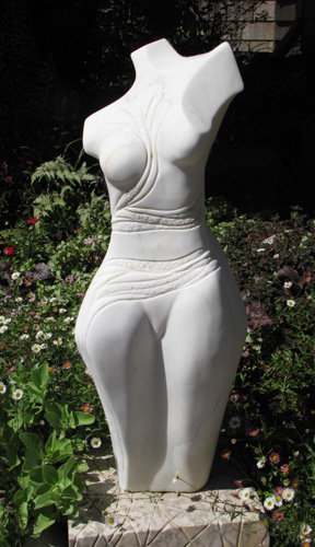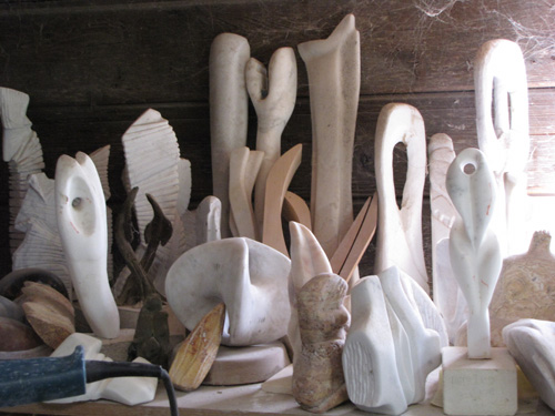 Warren sculpts stone at his home studio into a variety of subjects, including dolphins, octopi, nudes and abstract landscapes. He names Henry Moore, Isamu Noguchi and Constantine Brancusi as sculptors whose spare styles have influenced his work.