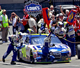 And what about that fuel? It's cleaner-burning fuel than what you can put in your Prius at the local gas pump and use to drive to Whole Foods. Once again, auto racing is at the forefront of innovation and fuel technology, as the fuel NASCAR will run at all its events this year is a special hybrid refined by Sunoco in Pennsylvania. It emits 20 percent fewer greenhouse gasses than the unleaded fuels sold in every gas station in the country, and it also gives the engines increased horsepower. The mix, called Sunoco Green 15, is a blend of racing fuel and ethanol. It's just one of the many green initiatives NASCAR has focused on in recent years.