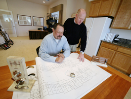 Future Perfect: Wes Winter, left, and Bill Mabry of Aegis Senior Living look over blueprints in 2006, back when it seemed like building the Fountaingrove Lodge would be hassle-free.