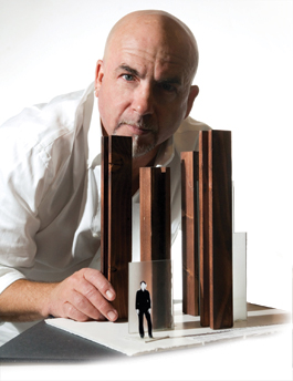 REMEMBRANCE: Artist Gordon Huether in his studio with a model of the planned 9-11 memorial sculpture.