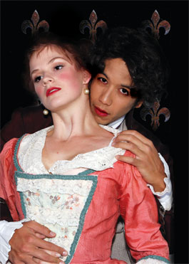 NECKING: Skye Bronfenbrenner is the demure Mme. Tourval; Ricco Fajardo, the Vicomte who wishes to claim her.