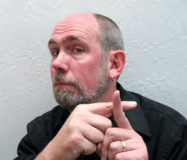 . . . . his own puppet show. Ladies, and gentlemen, I now present, The Boyfriend Show, starring, in no particular order. . . [Using one hand as an imaginary Ken-the-Biker puppet, speaking in a Clint Eastwood growl as David alternates the story with the 'puppet'] . . . Ken-the-Biker . . .