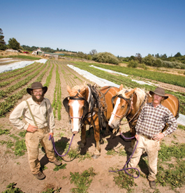 TWO WIDE HORSES: Adam Davidoff, 'the Girls,' and Ryan Power (L-R) at New Family Farm in Sebastopol.