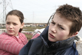 Dylan (Shane Curry) and Kylie (Kelly O'Neill) are next-door neighbors in a part of Ireland one would prefer to drive through at 65mph, and fortunately there's a highway so folks can get out fast. A vast, cold and smelly-looking fen faces the two children's houses. A trickle of little bastards, mini-bike riders and pram-pushers harass the kids every time they go outside in the concrete front yard. But getting outside is a good idea, even in the raw December weather.