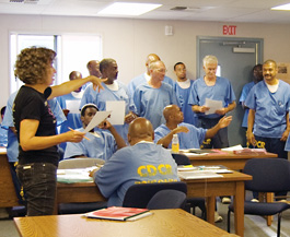 OUTSIDE INSIDE: Instructor Karen Lovaas leads inmates in a discussion of the BP oil spill.