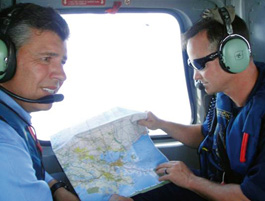 HIGH FLYIN': For some reason, California's lieutenant governor Abel Maldonado (left) had to rush to witness the Gulf oil disaster for himself. At least he looks good with a map!
