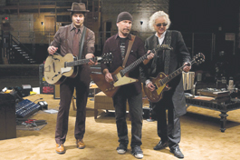 Some will remember the Blind Faith incident: the supergroup that gets together and can only play a half-remembered Buddy Holly song. The trio of Jack White, the Edge and Jimmy Page got together for a summit meeting in a studio for It Might Get Loud, Davis Guggenheim's fine documentary paean to the electric guitar. What happens is not really more than a sum of its parts, though it's gratifying to see three such first-rate guitarists stumbling over the tricky chords of the Band's "The Weight" just like all of us campfire jammers. Guggenheim (An Inconvenient Truth) tells the backstory of these three musicians. White was born to an enormous Catholic family in a tough part of Detroit. He was a drummer-turned-guitarist, scavenging and salvaging instruments while taking up the upholsterer's trade. The success of his band, the White Stripes, revived punk, roots and blues among listeners who had never heard anything rougher than a synthesizer. At a farm in Tennessee, White demonstrates how to make a one-string electrical instrument, a variation on the blues diddley bow; he screws in a pickup and uses it to rattle the countryside.