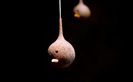 The only fine art gallery in the United States devoted to crematory objects, Funeria actively seeks out and encourages artists to embrace the subject. Among those who have really thought on the topic is English designer Nadine Jarvis. Reflecting life's chaos, Jarvis crafts feeders made of human ash, seed and suet that are gradually devoured by wild birds. She puts human ashes in ceramic eggs that hang from a thread made to break—when and where being as unknown as death itself is guaranteed—smashing the vessel to the ground and scattering the ashes. Jarvis also creates pencils from human ashes—one person being roughly equivalent to 240 writing utensils—with a special sharpener that returns the ashes as shavings to the pencil box.