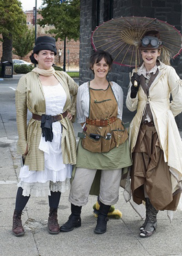 Maxfield and Handcar Regatta cofounder Ty Jones, owner of Ray Modern, like the elasticity of steampunk's look and ethos. It's family-friendly (think adorable ragamuffins in newsboy hats), it's creative (hand-hammered copper laptop covers), it's silly (modern-day snake-oil salesmen replete with jugglers) and it's trendy (girls in corsets). Inventing Dr. Kitty's overblown tale as a backdrop to their very unusual festival was just among the pleasures.