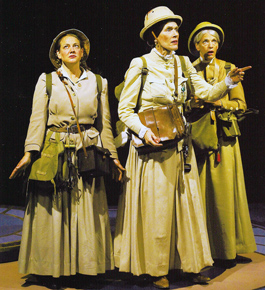 The best thing about Eric Overmyer's absurdist play On the Verge is the torrent of tongue-twisty language articulated by the trio of Victorian "lady explorers" at the center of the playwright's time-traveling comedy. And the best thing about the just-opened production at Petaluma's Cinnabar Theater is the obvious relish with which the cast lets Overmyer's text fall, bounce, rocket and ricochet from their tongues. "The bane of my many travels in the tropics is a bland, mucilaginous paste called manioc," pronounces Mary (Jessica Powell), "made from the forlorn and despicable cassava, a tuber of dubious provenance." Overmyer, clearly, is possessed of a steadfast affection for rhyme and alliteration. "Whenever I must palaver with pasha or poobah, I don this tonsorial getup," confesses Fanny (Laura Jorgenson). Remarks the trouser-loving Alexandra, "In Lhasa, on the bone-white hill of the Potala, before the lunar congregation of Buddhist alchemists, I saw the Dalai Lama himself transmute great buckets of gold coins. Into yak butter." Even the snowball-chucking yeti played by Tim Kniffin, attacking an octet of rotating roles, is given, by Overmyer, a hilariously "language-y" howl to hurl. Rich in verbal pyrotechnics, the play is unfortunately anemic in the area of plot or story, presenting a series of random oddities as the three women set out in 1888 and find themselves moving forward, Twilight Zone–like, toward 1955. The direction by Beth Craven (whose sense of pace was so perfect early this year in The Scene, still one of my favorite productions of 2009) slips up here, allowing the pace to plod along, as if through mud. Other choices, as in a series of perplexingly dim and unclear rear projections stating chapter headings of each new scene, only knock the production further into the mire. While the giddy and well-honed performances, and all that smoldering wordsmithery, are more than reason enough to see On the Verge, one is unlike to arrive at the expedition's climax without wishing there'd been a little more there there.