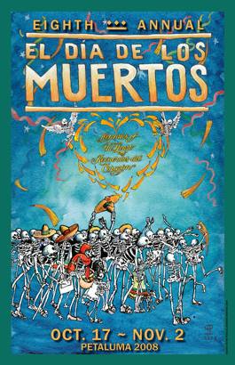 This imagery lives inside the latest poster for Petaluma's annual El Dia de los Muertos celebration, reminding us that the dead can still be given animation via the colorful celebration of their memories.