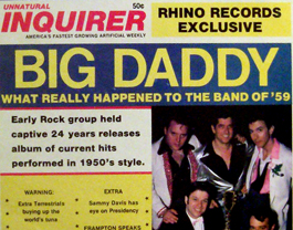 A decade later, a more identifiable group latched on to the same concept and rode it into the CD age. Big Daddy was an L.A.-based quintet whose "official" bio explains that the band members were captured during a USO tour of southeast Asia in 1959 and held in Laos as POWs. The band was allowed to practice and play, but didn't hear any new music until their release from prison in the mid-1970s, which explained, so the story went, their need to play then-current songs in styles that were mostly two decades older.