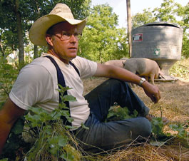 With his affable sincerity, Salatin proves that the sustainable food movement is not solely the domain of the righteous elite. Despite the success of his farm (over a million dollars of sales annually) and his rise to celebrity status, Salatin tells me, "I'd just as soon go out and tote buckets of water and run a chainsaw as well as anything. I love earthworms. I desperately want earthworms to be happy, to dance and not feel assaulted."