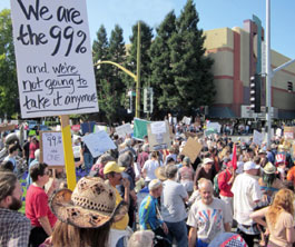 On Oct. 15, thousands of people gathered at Santa Rosa City Hall and marched downtown in solidarity with Occupy Wall Street in New York City. Calling themselves the 99%, demonstrators held signs castigating widespread unemployment, cuts to education and healthcare, big-bank bailouts and political power of corporations.