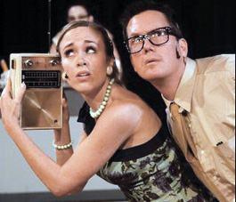 Wise up, globe-trotter! No self-respecting, husky and well-fed buck would subserviate to a bevy of zaftig vixens!" Take cover, because hilariously overwritten lines like that—this one delivered by a government scientist addressing a sexy opera-singing alien bent on kidnapping all of Earth's "virilitous he-specimens"—come flying toward the audience at the speed of light in the ultra-campy sci-fi musical Zombies from the Beyond. Presented through Halloween (perfect timing!) by Odyssey Stage Company, James Valcq's comic spoof is a playful homage to 1950s alien-invasion movies, and the songs capture the goofy, pre-'60s rock and roll innocence of the era. The story takes place at and around the Milwaukee Space Center, where Maj. Malone (Steve Kirkbride), with his super-competent second-in-command Rick Jones (Nick Chuba, a first-rate physical comedian), are monitoring the skies for signs of alien existence—and/or Soviet aggression. Rick has been courting the major's high-IQ daughter Mary (Katie Kelley, above), and with the arrival of the brilliant, pipe-smoking scientist Trenton Corbett (a pitch-perfect Mark Bradbury, above), romantic entanglements and a bunch of singing-and-dancing quickly ensue.