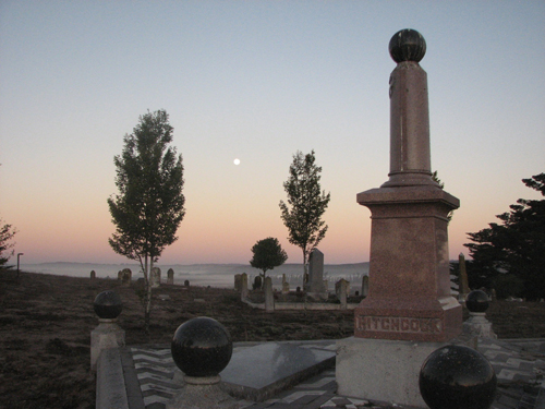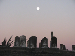 BLOOMFIELD MOONRISE: The Bloomfield Cemetery was established in 1860 after area residents grew tired of burying community members in the local schoolyard. The stone figures of this graveyard evoke chess pieces and an earlier grandeur.