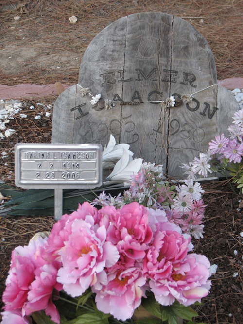MARKERS: The wooden headstone of Elmer Isaacson (1905–1980) is accompanied by the Forestview Cemetery's own marker for Marian L. Isaacson (1914–2006). Elmer's wife? His sister? These silent testaments to the connections of life give inevitable rise to their own stories.
