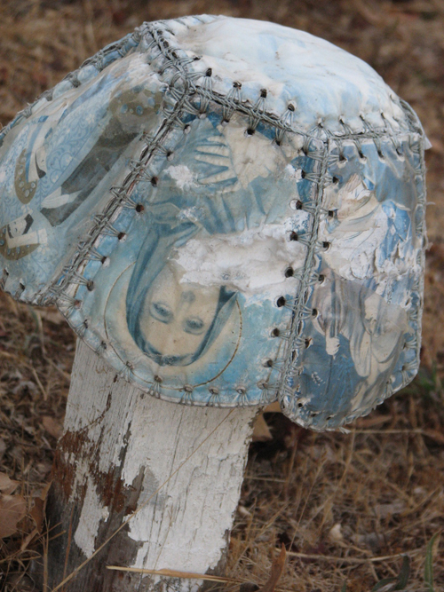 OUR LORD OF THE HANDMADE BOWL: At the tiny Gilliam Cemetery outside of Graton, a grave is marked with a white wooden post incongruously topped with a stitched vessel featuring Biblical images.