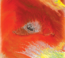 Visual art hadn't much crossed his mind until his longtime drum tech Lawrence "Ram Rod" Shurtliff died, and that's when grief resulted in inspiration. A series of wood sculptures followed, with some watercolor gouache for good measure. Art shows followed. But Hart wasn't done yet. Now pouring paint à la Jackson Pollock (detail from The Foot of God, above), Hart's newest works elicit what he calls "the wonder of chaos and the flow—all the glorious symmetry in one."