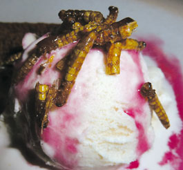 CRAWLING IN LOVE: Yes, those are mealworms on ice cream, and, no, you don't have to eat them.