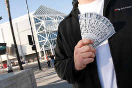 Paper Money: Alex (above) and other scalpers had plenty of tickets at the recent sold-out 'Hannah Montana' show.