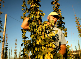 BREW TERROIR: A worker harvests hops at Chico's Sierra Nevada Brewing Co.
