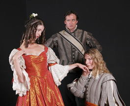 " 'I nnocent' is a most approximate term." This proclamation is made late in the second act of playwright John Strand's satisfyingly funny, word-warring adventure Lovers and Executioners . In Strand's view of the world, nothing is ever all black or all white, all sweet or all sour. Neither is Lovers and Executioners , a rich, thoroughly enjoyable English adaptation of La Femme Juge et Partie , a largely forgotten 17th-century play written by Molière's most vigorous theatrical rival, Antoine Jacob de Montfleury. As staged by the Marin Theatre Company, under the sure-handed direction of Josh Costello, the wonderful period details—the witty dialogue all in verse, the magical set by Steve Coleman, the magnificent costumes by Fumiko Bieldfeldt—manage to anchor the story in France of the 1600s while maintaining a solidly contemporary sense of humor and social awareness.