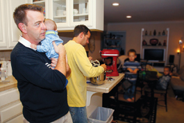 SUGAR DADDIES: Wayne Smith cradles soon-to-be adopted son Levi, while Brent Vanke prepares dinner. The couple, who were married on Oct. 11, have two other adopted sons, Lazarus and Israel, and are fostering two sisters, ages nine and 11.