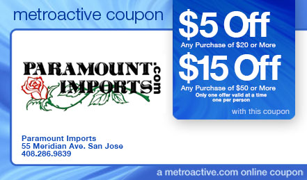 $5 off purchase of $20 or more or $15 off purchase of $50 or more at Paramount Imports in San Jose, CA