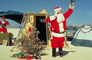 Christmas Camp, the first themed camp at Burning Man, made its debut in 1993. Photo by Gerry Gropp