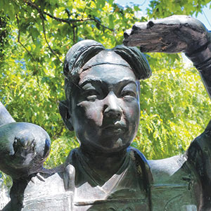 MODEL RELATIONSHIP: The Peach Boy statue is a somewhat hidden reminder of San Jose's Sister City relationship with Okayama.Tucked away behind the San Jose Center for Performing Arts, right at the edge of the Guadalupe River, the Peach Boy remains somewhat hidden underneath the bushes. The statue of Momotaro, a hero of Japanese folklore, was gifted to San Jose by the city of Okayama in 1993. Upon a recent visit, the statue was cluttered with a few cobwebs, but it still retained an austere mythological status.
