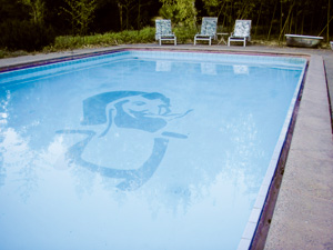 SUNKEN TREASURE: The pool at Chateau Liberté was graced by the ubiquitous image of the Zig-Zag Man.
