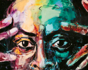 "Psychically, I can feel everything that's going on," says Bruni. "Especially if it's an entity that suffered a lot, I'll be crying when I'm painting—Charlie Parker, Billie Holiday, Bill Evans. Almost all of the jazz greats were people that were kicked in the teeth."