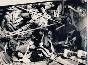 ORPHANS OF THE STORM: South Vietnamese boat people fleeing their country in a small craft arrive in the coastal waters of Hong Kong. These people had been without food or water for several days when British authorities boarded the craft and took this photo of the passengers, some dead, some dying.