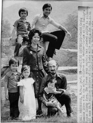 FAMILY ON THE LAM: David Simmons (bottom right) with his wife, four of his children, and a brother-in-law, in West Virginia after fleeing Saigon. Simmons established a residence near his childhood home, where federal and state authorities arrested him.