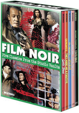 Stretching the definition of film noir beyond the breaking point, Kino packages a quintet of oddities (available separately but not so conveniently or inexpensively). No one doubts the credentials of Fritz Lang's marvelous Scarlet Street (1945), which reunites Edward G. Robinson, Joan Bennett and Dan Duryea from his previous film, The Woman in the Window. Robinson plays a buttoned-down wage slave and Sunday painter who gets a taste of the high lowlife when he meets a lovely tart named Kitty (Joan Bennett, who makes a memorable entrance in a clear plastic raincoat). Turns out Kitty and her snarky, stylin' pimp (Dan Duryea in a straw boater and bow tie prepping for his role as Slim Dundee in Criss Cross) are conniving on Robinson's imagined fame and fortune as an artist. The film, in true noir fashion, plows inexorably ahead to an unusually down ending. This disc features an excellent new transfer from a Library of Congress print and looks much better than any of the other copies I've seen. One the other hand, what is one to make of Contraband (1940), a bit of British wartime propaganda that predates the noir cycle? It stars Conrad Veidt (a German actor who often played stereotypical Nazis, most famously as Maj. Strasser in Casablanca) as a Danish tanker captain who helps a perky English spy (Valerie Hobson) foil some German operatives in London. The action is interrupted by so much comic relief (who knew that the Danes were such cutups?) that keeping track of the plot isn't worth the effort. Nothing here even hints at the better work of the team of director Michael Powell and writer Emeric Pressburger: Black Narcissus and The Red Shoes. Perhaps the patriotic message is meant to set the stage for the postwar malaise of They Made Me a Fugitive (1947), in which Trevor Howard plays a disaffected RAF vet who joins a gang of black marketeers headed by Narcy (short for Narcissus, and played with brio by Griffith Jones). Jailed for a murder he did not commit, Howard escapes from prison and tracks down Narcy, who framed him. His encounters along the way (including a bored housewife who wants him to murder her husband) paint a dyspeptic portrait of England's slow recovery from the war. The action sometimes falters (Howard takes out some heavies with a milk bottle), but there is a great rooftop battle framed by giant letters spelling out RIP, and some weird crackling dialogue ("This is the last time Morgan runs his fingers through my permanent wave"; "It's like taking ju-jus from a blind baby.") The film offers interesting parallels to some of the noirs about lost and psychologically damaged war vets made in America, like The Blue Dahlia and Somewhere in the Night. Ida Lupino's The Hitch-Hiker (1953) is based, it claims, on a real story —"For the facts are actual." Schlubby pals Edmond O'Brien and Frank Lovejoy are carjacked on a fishing trip in Mexico by William (Hamilton Berger on Perry Mason) Talman's serial killer. Lupino's direction is stripped down: a man's feet approaching a car, the door opening, a scream, a gun shot, and we're off. The box set wraps with Strange Impersonation (1946), an early effort by noir expert Anthony Mann (T-Man, Raw Deal, Railroaded). Brenda Marshall plays Nora Goodrich, a scientist who wakes up disfigured after experimenting on herself (!). The premise goes careering off the rails as her lab assistant vamps her boyfriend, and a blackmailer puts the pinch on Nora. When the blackmailer turns up dead, Nora takes her identity, travels to L.A. for a year's worth of plastic surgery (at no charge, apparently) and then returns to exact her revenge. This somewhat crazed and occasionally risible film could be called a noir, but it really belongs in that weird subgenre of movies about plastic surgery, where Stolen Face, A Woman's Face and Dark Passage dwell. (Michael S. Gant)
