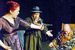 HIT ME WITH YOUR BEST SHOT: Doll Piccotto (left), Jason Salazar and Matt Singer try to solve the mystery of 'The Unexpected Guest' at Northside Theatre.