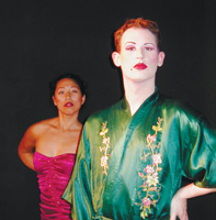 In the second act as the two couples mix and match on the huge bed, Chaidez's formal gown gives way to a black vest and dress jacket as if she's emceeing a variety show. By the third act, glitter makeup still glistening, Chaidez is singing, "It's so nice to have a man around the house" in a party dress. Not so much sultry as dreamy and fantastical and without the belt-out voice, Chaidez's gentle, expressive interpretations of the old torch songs match what Theriot has done with the husky-voiced, loud-mouthed Fierstein role for a production that smoothes out the shrill edges with warmth.