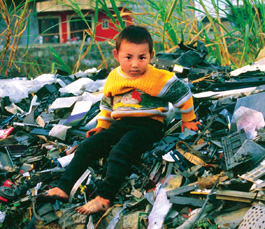 Your junk stops here: A child in Gulyu, China sits atop one of countless piles